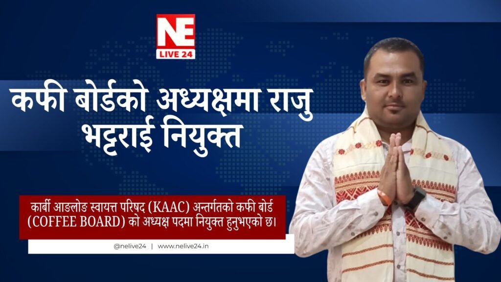 [Nelive24], पश्चिम कार्बी आङलोङ अविभाज्य कार्बी आङलोङ जिल्लाका प्रतिष्ठित नेता तथा जुझारु व्यक्तित्व श्री राजु भट्टराई कार्बी आङलोङ स्वायत्त परिषद (KAAC) अन्तर्गतको कफी बोर्ड (Coffee Board) को अध्यक्ष पदमा नियुक्त हुनुभएको छ। कार्बी आङलोङ स्वायत्त परिषद सचिवालयको तर्फबाट उहाँलाई यस गरिमामय पदको जिम्मेवारी सुम्पिएको हो।